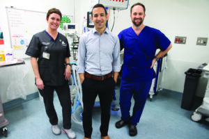 Kevin Trentino (centre) flanked by Kylie Symons and Dr Hamish Mace from FSH.